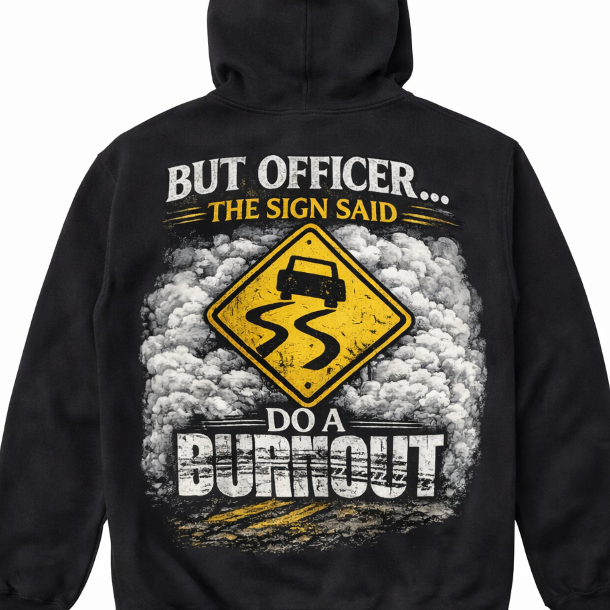 Funny Burnout Hoodie – “But Officer The Sign Said Do A Burnout” Street Racing Sweatshirt