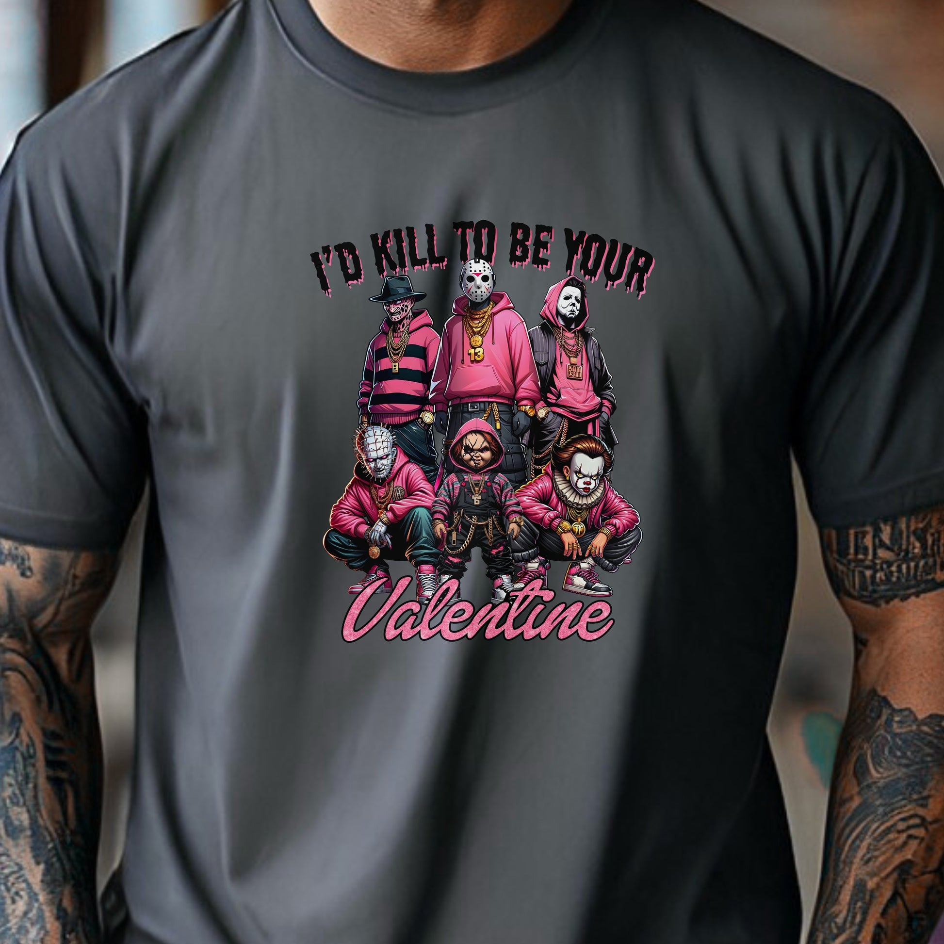 I’d Kill To Be Your Valentine Shirt Hoodie Sweatshirt – Horror Valentine Pink Graphic Tee Funny Dark Love Gift